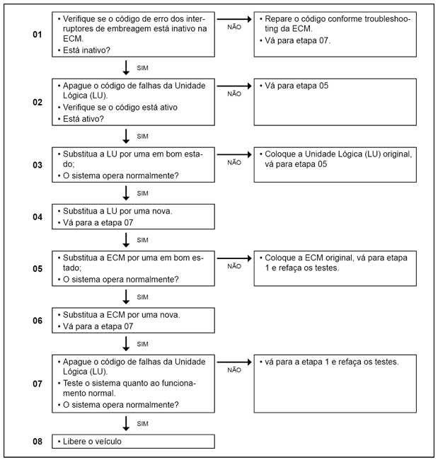 Interruptor superior de embreagem, sinal não plausível.
