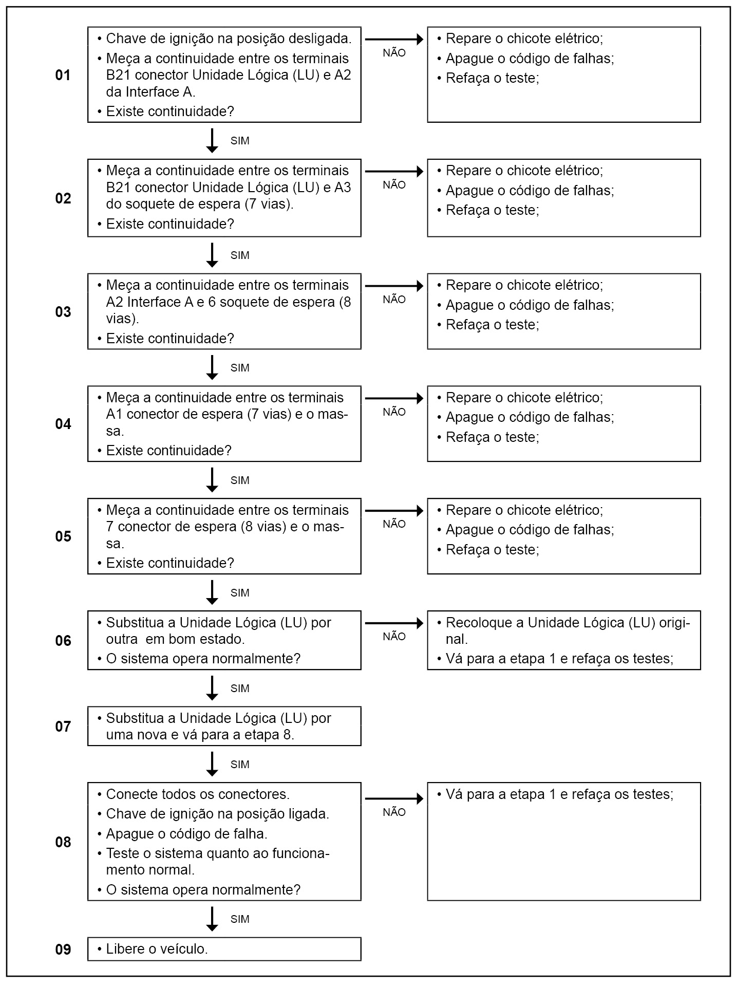 - Analisar o filamento da lâmpada e medir a continuidade entre os dois pólos da luz indicadora de direção esquerda do reboque.