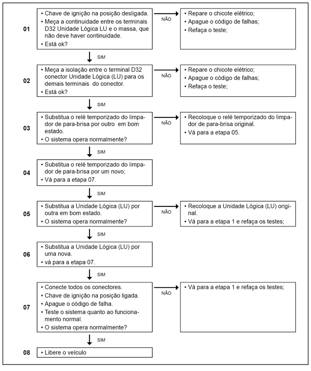 Este código de falha é registrado quando o sistema apresenta erro na saída do relé temporizador do limpador de para-brisas.