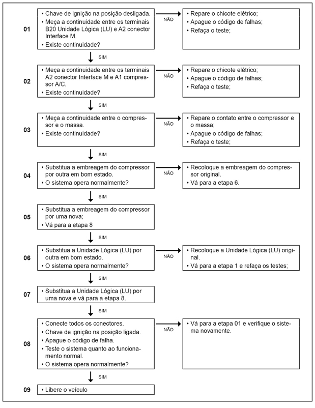 Circuito da saída do compressor do ar condicionado, interrompido.
