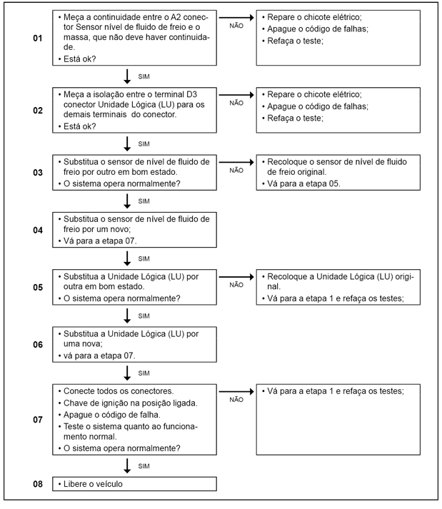 Este código de falha é registrado quando o sistema apresenta nível baixo do fluido de freio.