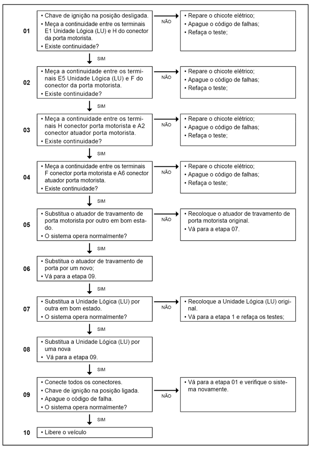 Sinal de saída do motor do travamento da porta motorista, com circuito aberto.