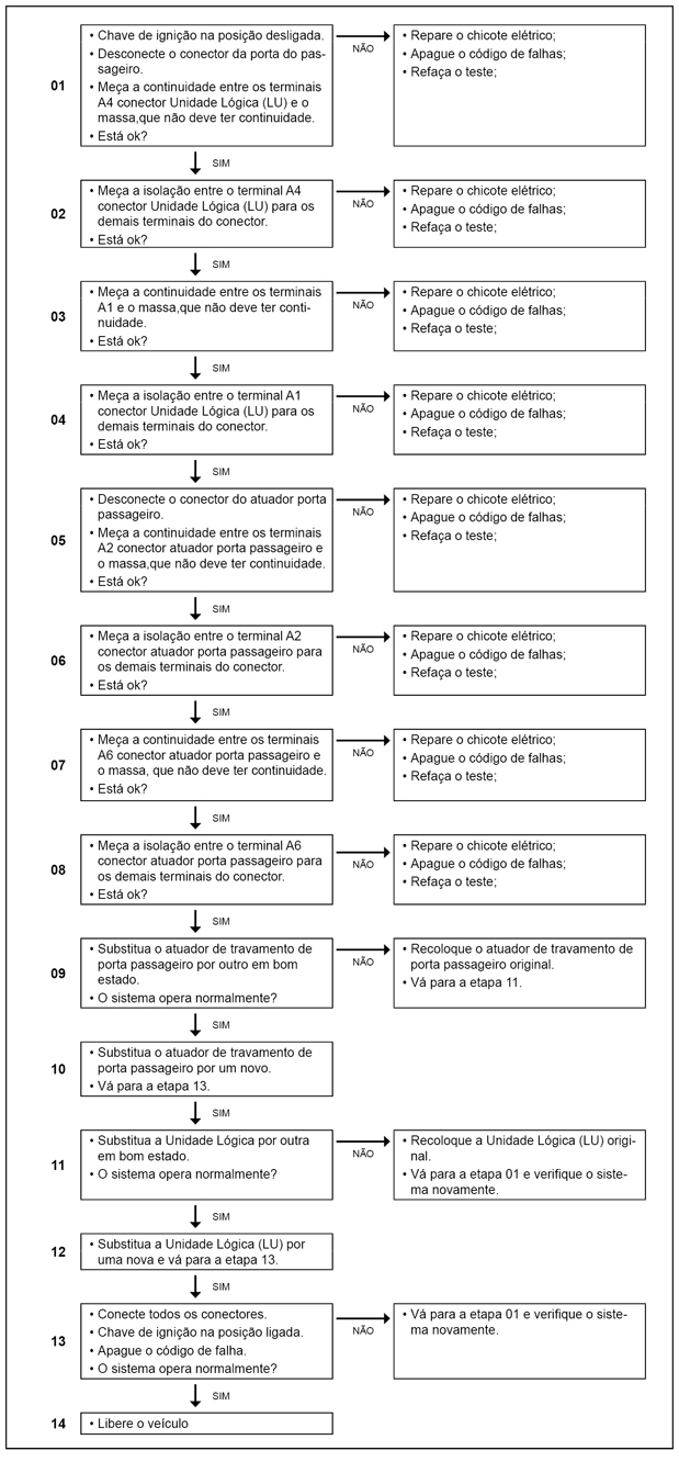 Sinal do atuador de travamento da porta do passageiro com circuito em curto com o massa.