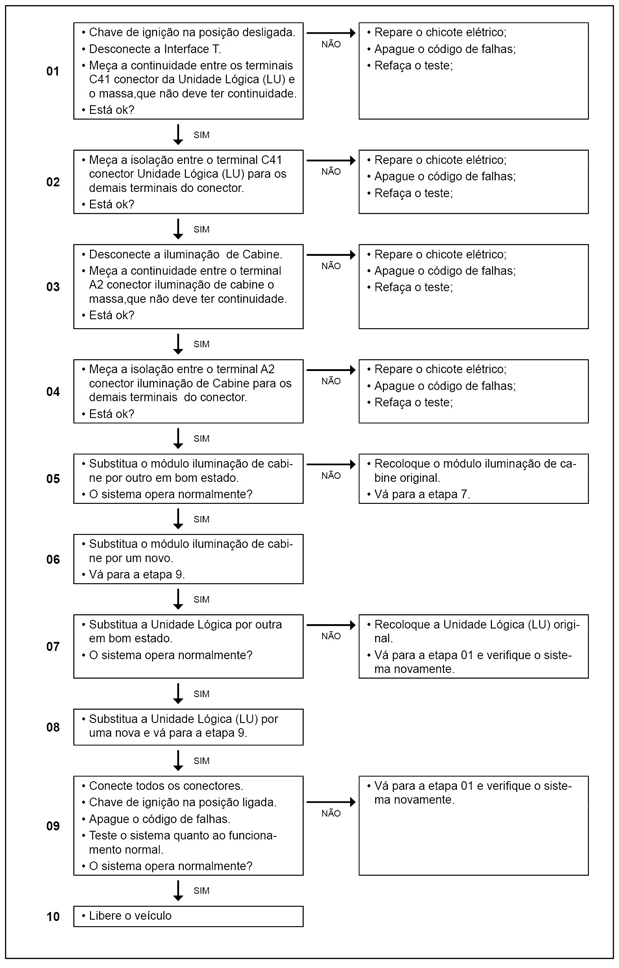 - Verifique o fusível da alimentação da iluminação de cabine.