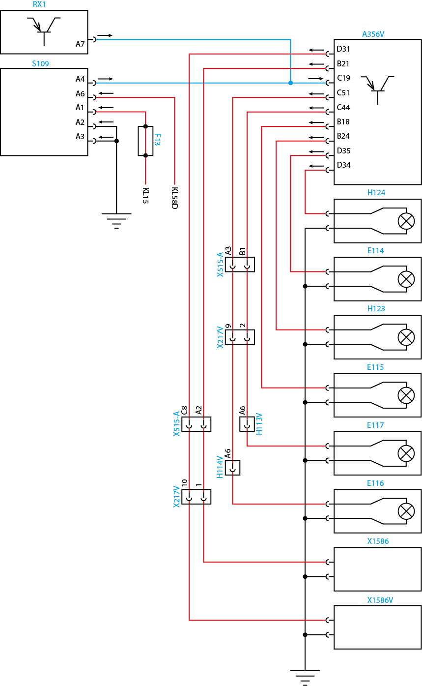 Verifique visualmente o circuito de comando e o das lâmpadas quanto a fios derretidos, descascados. Verifique também as condições das