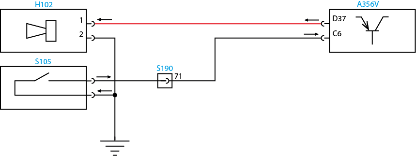 Circuito da buzina com circuito aberto.