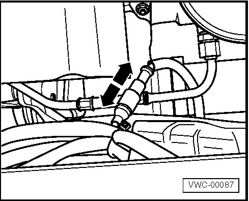 - Desconectar o conector do sensor no sentido das setas e remover o suporte de fixação do chicote, conforme imagem abaixo.