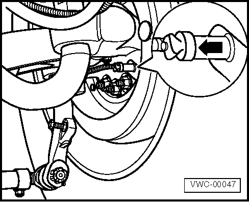 O sensor de rotação da roda dianteira (seta) está instalado na chapa de proteção do guarda-pó.